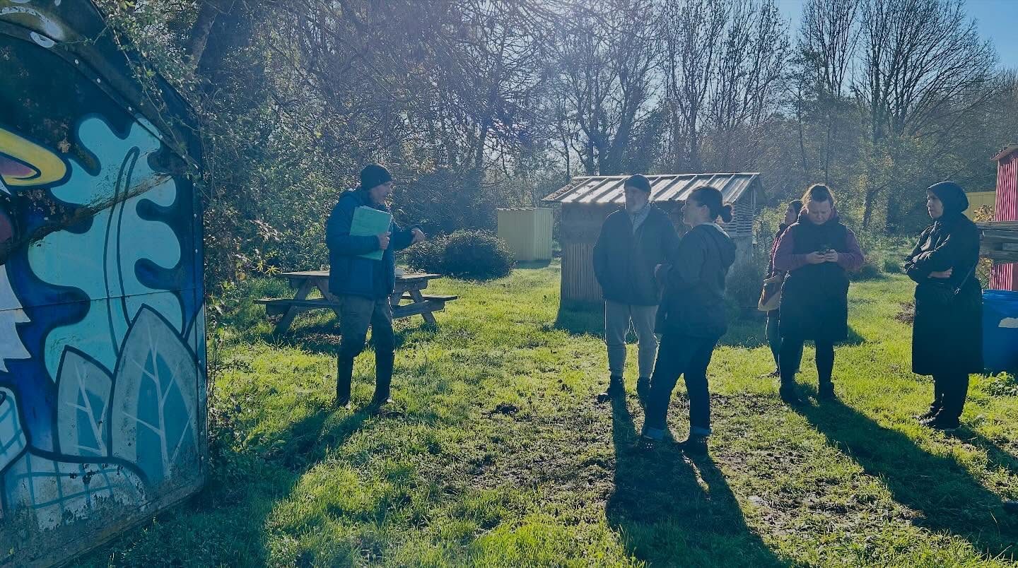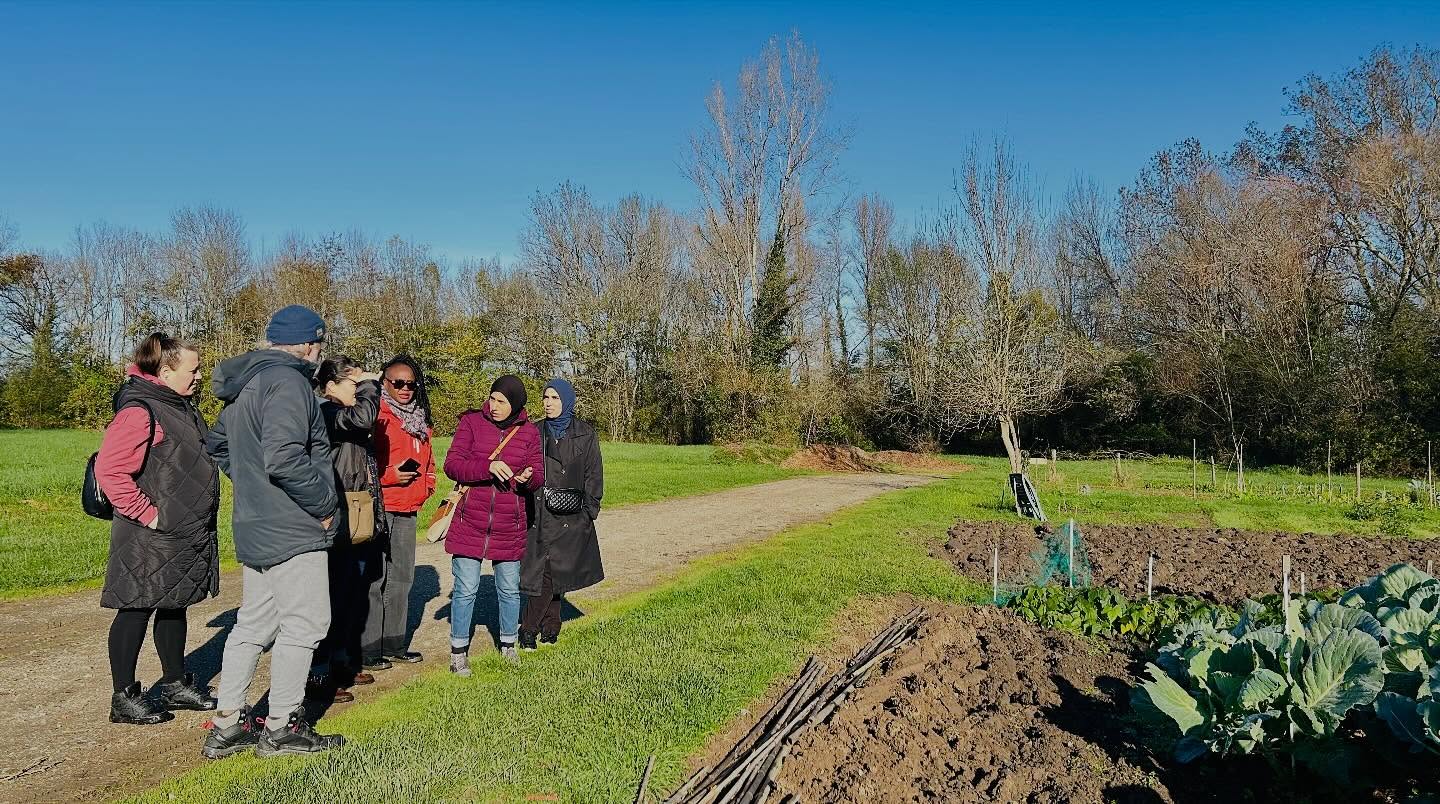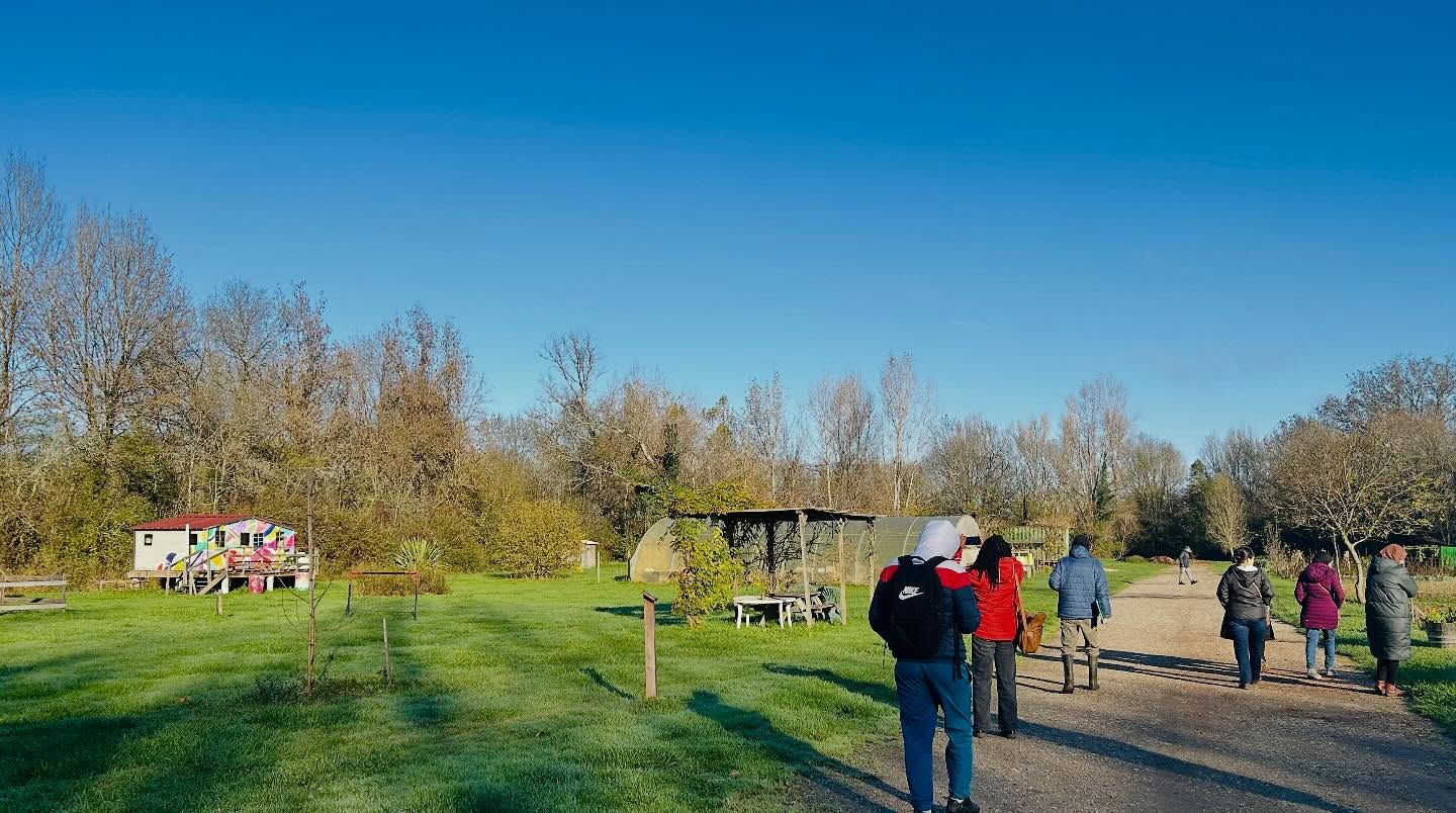 Mardi matin, sous un grand soleil mais dans un froid bien vif, nous avons eu le plaisir de visiter les jardins familiaux de Langon, guidés par Corentin de l’association Auringleta et Hervé, bénévole passionné des jardins.
